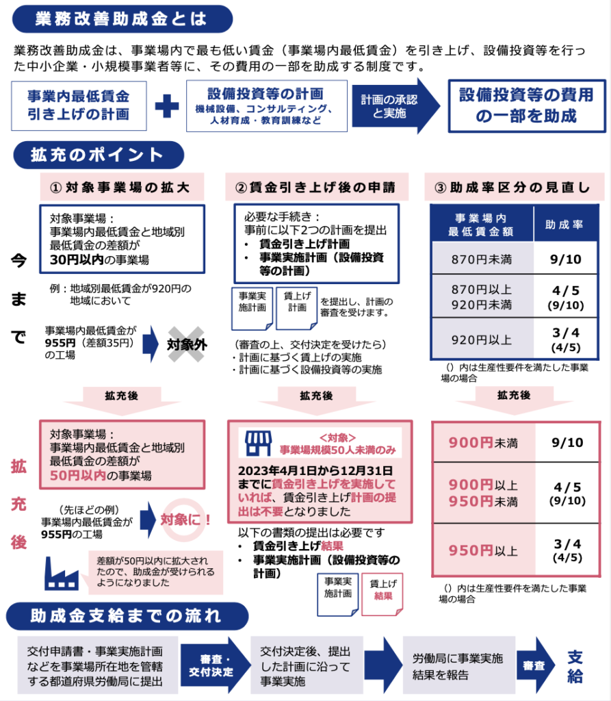 ―「業務改善助成金」 令和5年8月31日からの拡充のポイント(厚労省の資料より)―